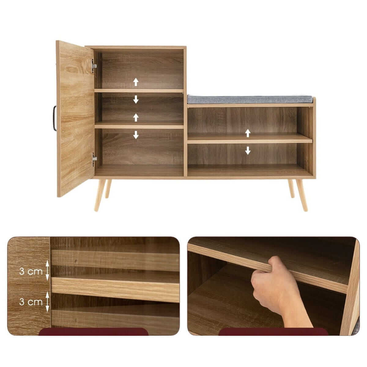 Paminkštinta Batų Spintelė Suoliukas Su Reguliuojamomis Lentynomis