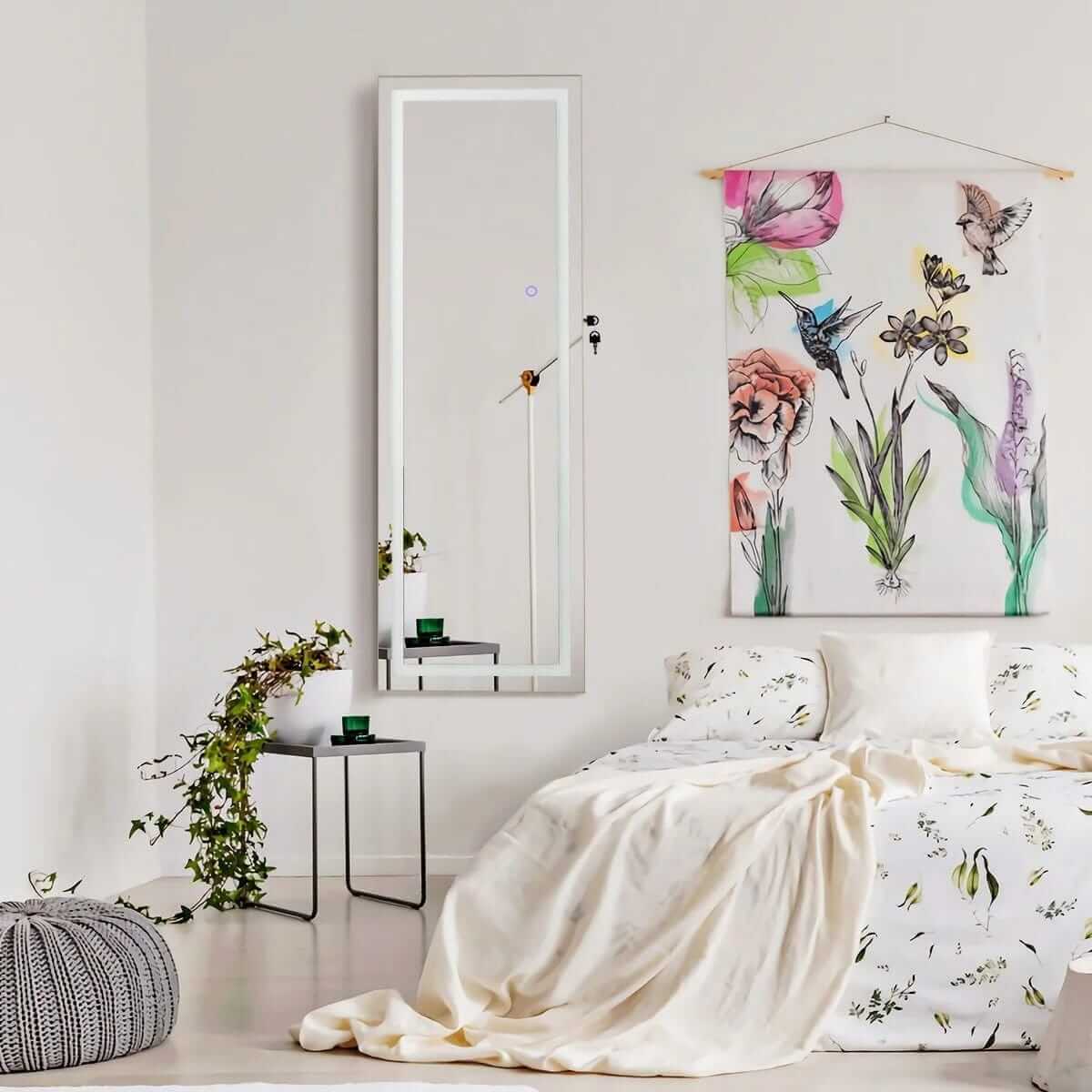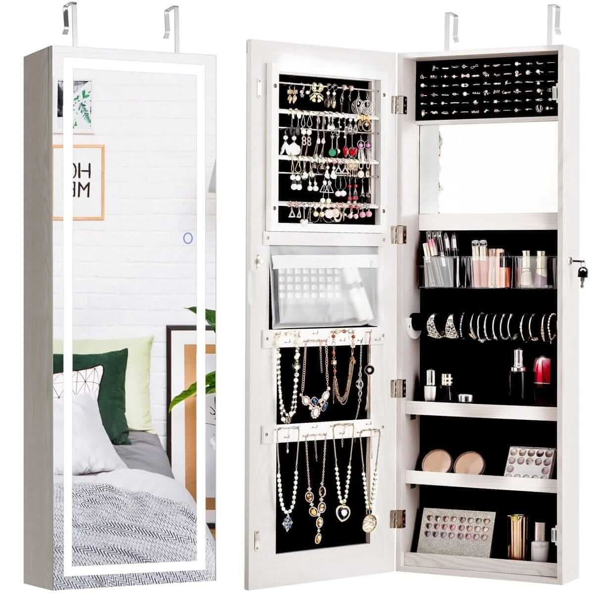 Papuošalų Spintelė Su Apšviestu Veidrodžiu Sieninis Tualetinis Staliukas
