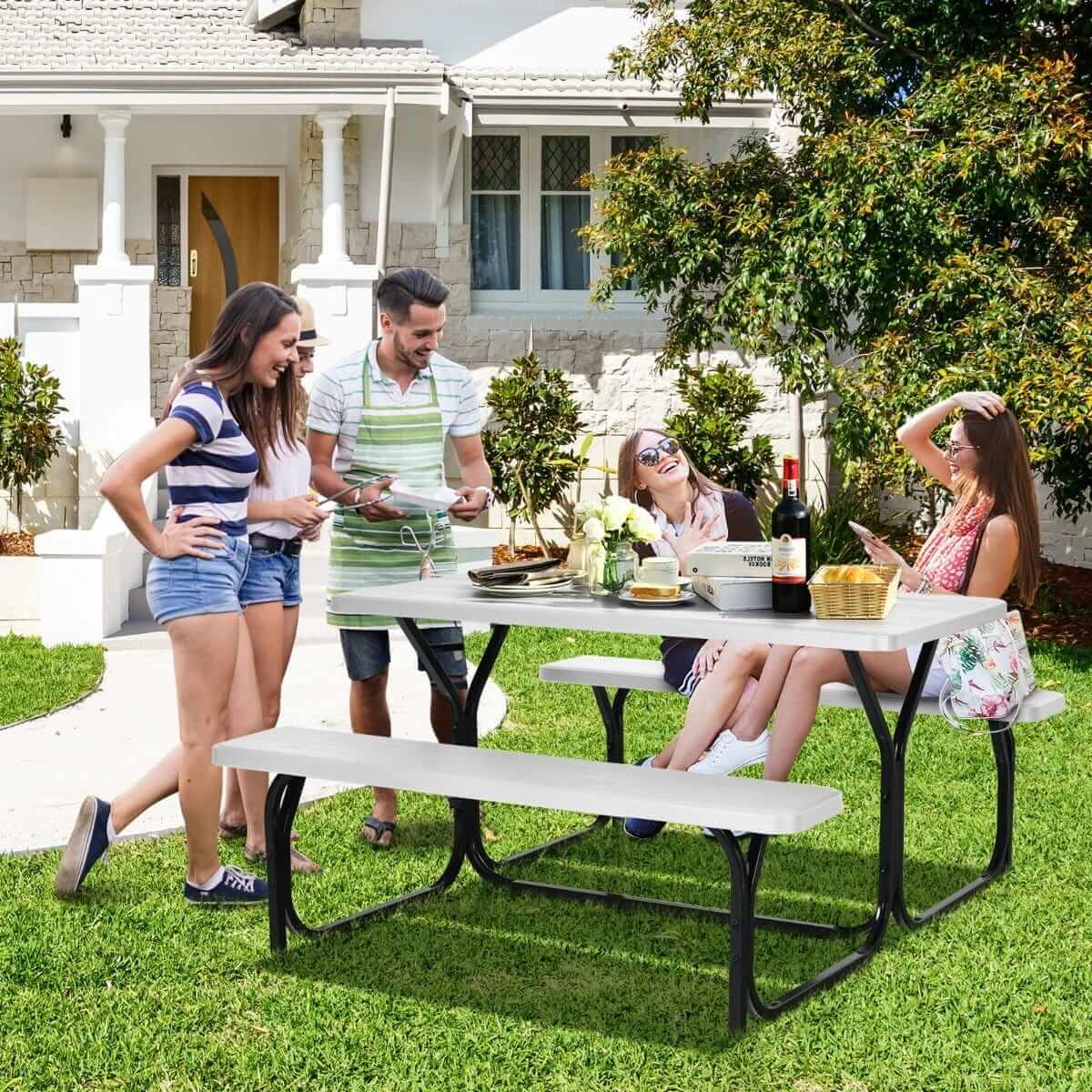 Pikniko Stalas Sode Su Suoliuku Baltos Spalvos