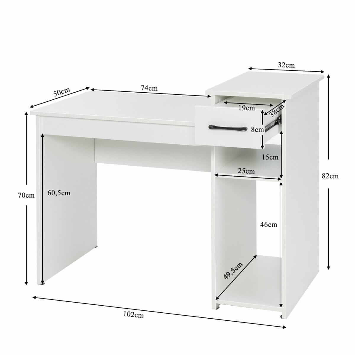 Rašomasis Stalas Su Stalčiais Ir Lentynomis, MDF, Baltas, 102 cm