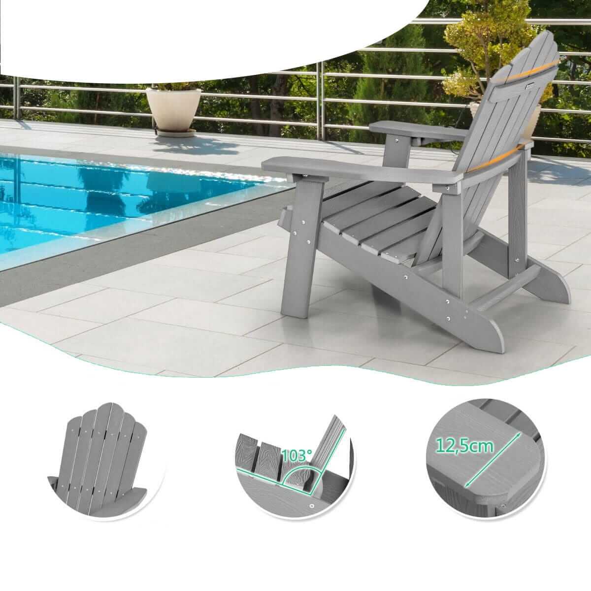 Didesnis stabilumas ir lengvas surinkimas: Naudojant daugybę nerūdijančio plieno varžtų, gulto konstrukcija bus tvirtai sujungta ir užtikrins stabilią atramą 170 kg apkrovai. Adirondack kėdė pateikiama su 8 dalimis ir pilnu varžtų rinkiniu, o dėl išsamių instrukcijų ją galima greitai surinkti vos per 15 minučių.