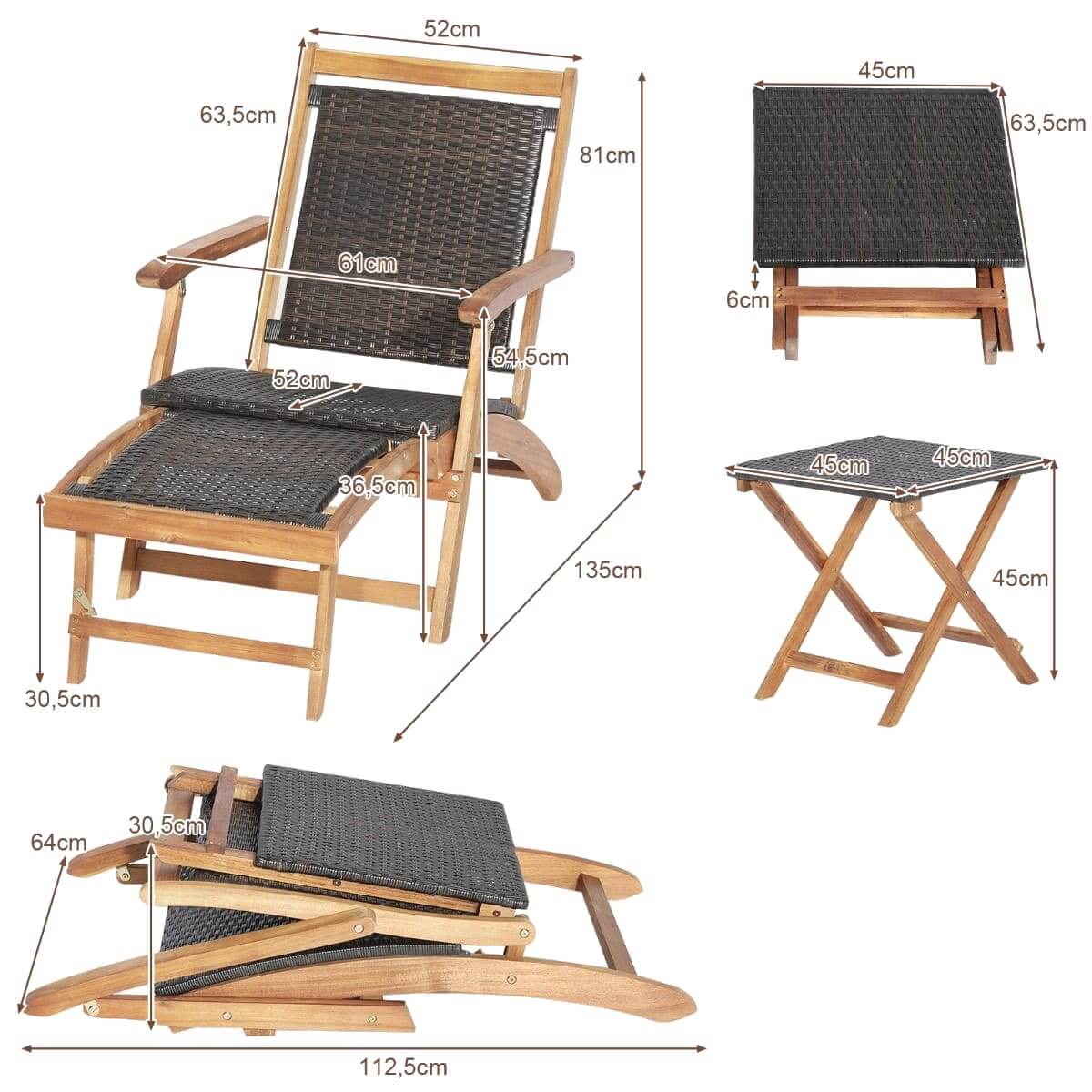 Šis sodo baldų komplektas – puikus pasirinkimas norintiems komforto ir praktiškumo. Unikalus ištraukiamas pufas leidžia patogiai ištiesus kojas mėgautis poilsiu lauke, o sulankstomas dizainas užtikrina lengvą laikymą bei transportavimą.