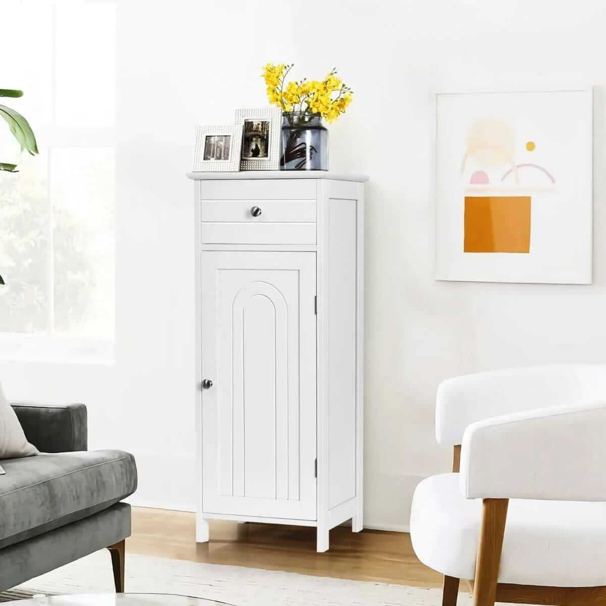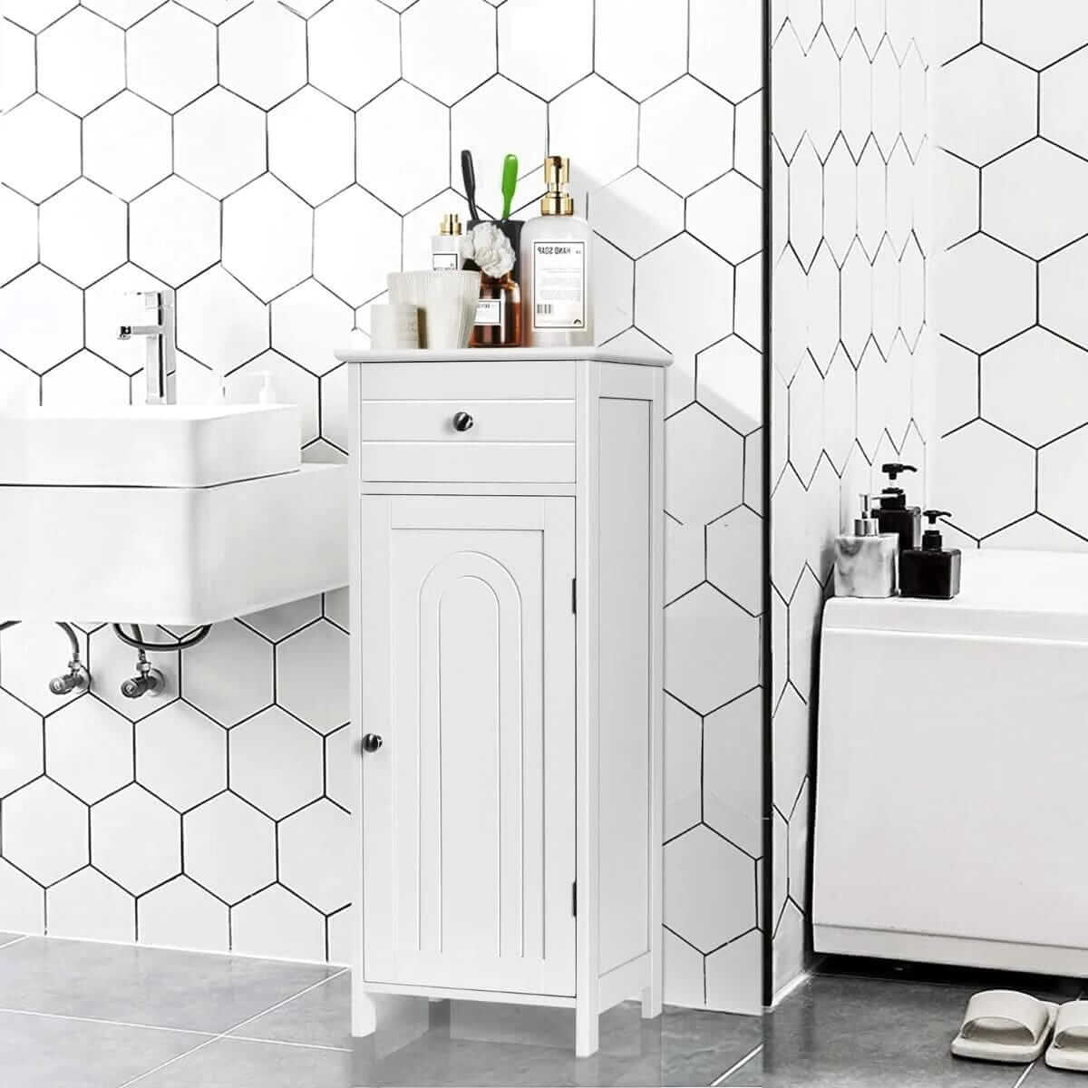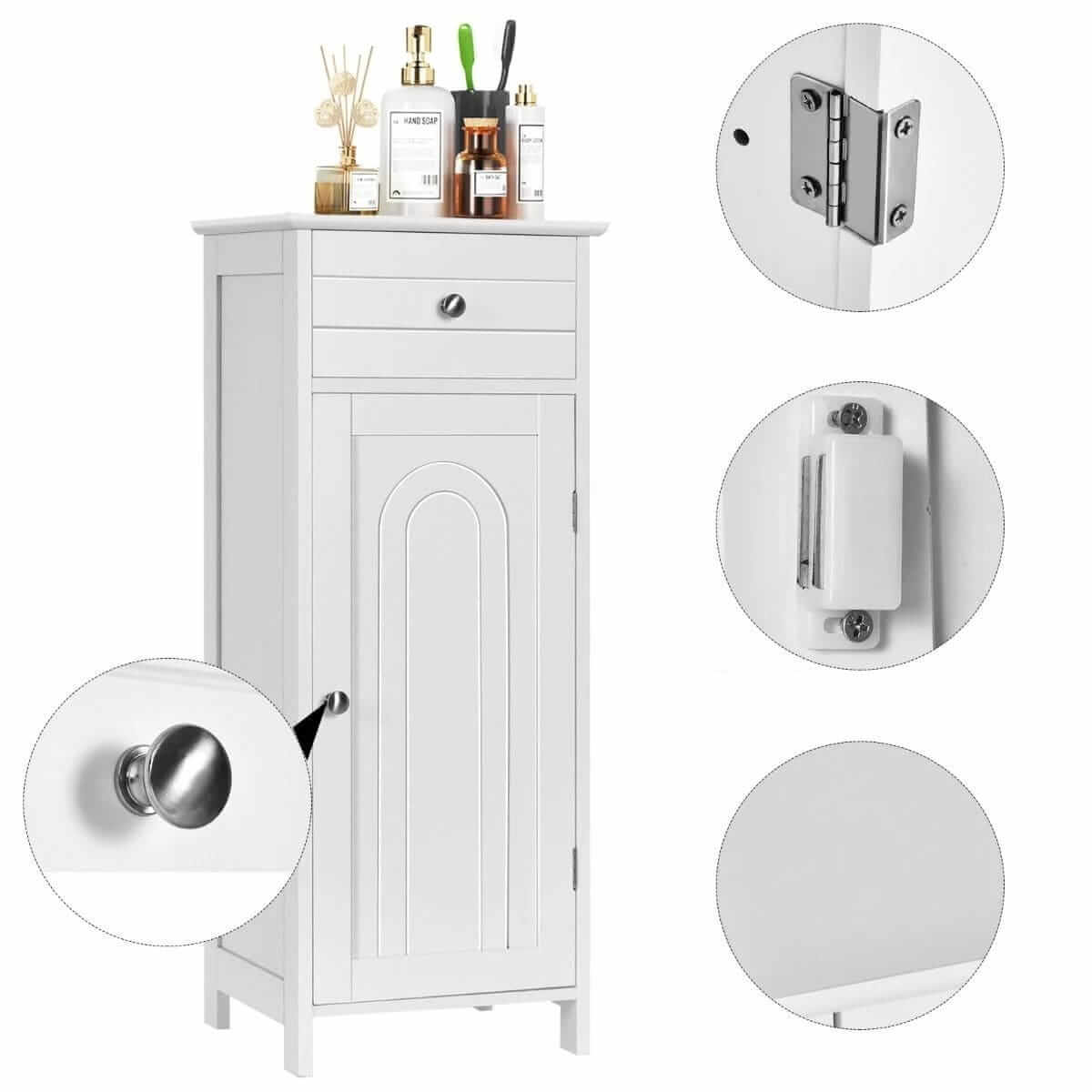 Mūsų pagrindinėje vonios kambario spintelėje su dviem lentynomis ir stalčiumi yra daug vietos rankšluosčiams, kosmetikos priemonėms ir kitiems kasdien reikalingiems daiktams. Ji pagaminta iš aukštos kokybės MDF, todėl yra tvirta ir ilgaamžė. Tvirta konstrukcija neleidžia jai klibėti ar atsitiktinai apvirsti, todėl užtikrinamas saugus naudojimas. Vidines lentynas galima keisti, kad jose tilptų įvairaus aukščio daiktai. Dėl savo paprastos ir elegantiškos formos ji gali derėti prie įvairaus stiliaus kambarių. Jis puikiai atrodys vonios kambaryje, svetainėje, miegamajame ar prieškambaryje.